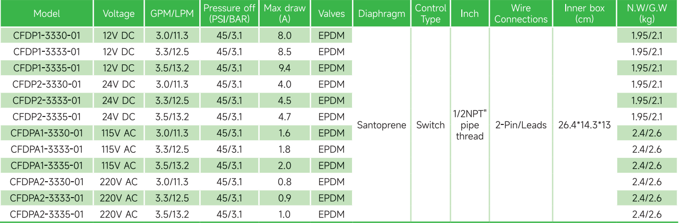 Bomba de diafragma de desplazamiento positivo de 4 cámaras, autocebante, capaz de funcionar en seco |