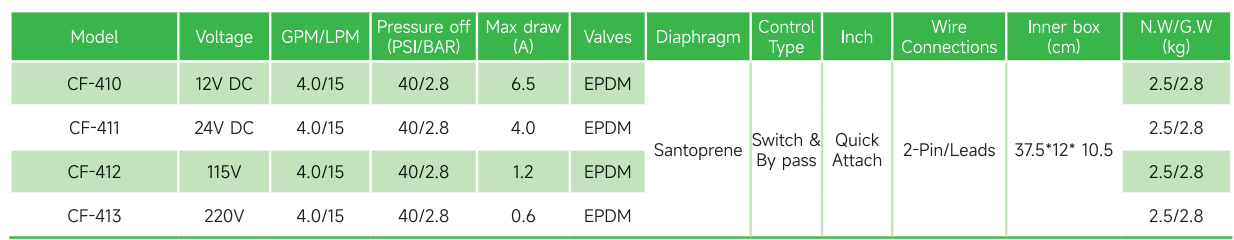 Bomba de diafragma de desplazamiento positivo de 4 cámaras, autocebante, capaz de funcionar en seco |
