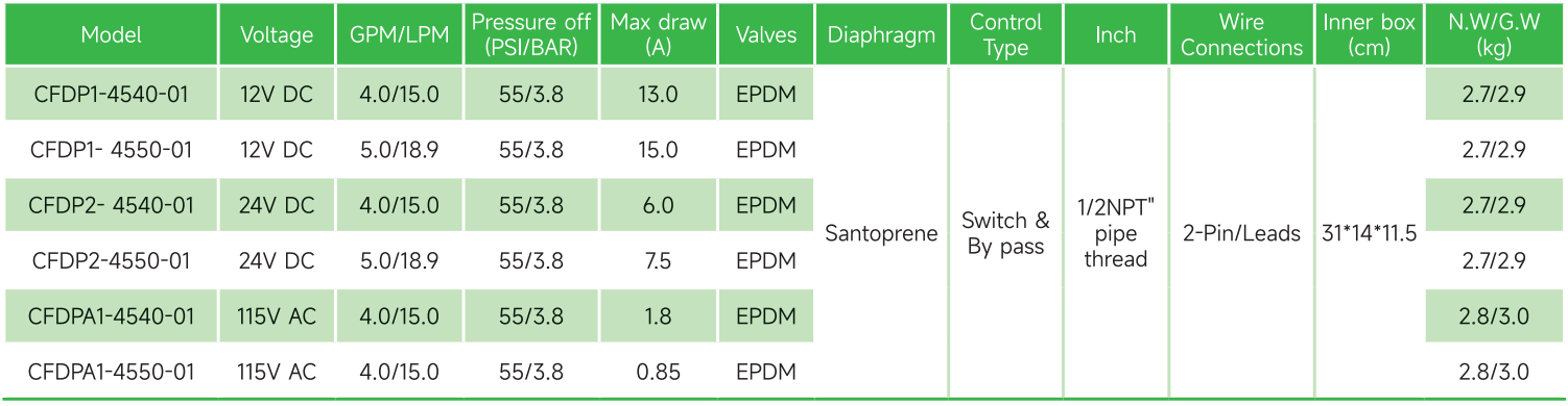 Bomba de diafragma de desplazamiento positivo de 4 cámaras, autocebante, capaz de funcionar en seco