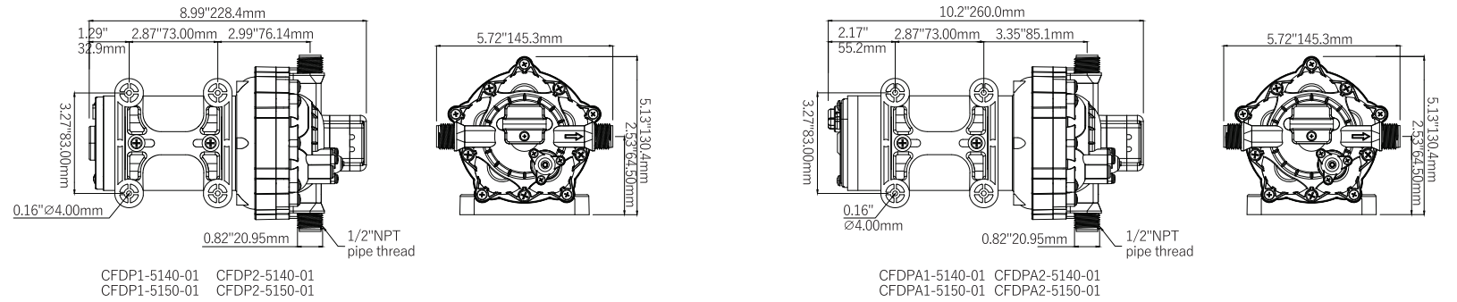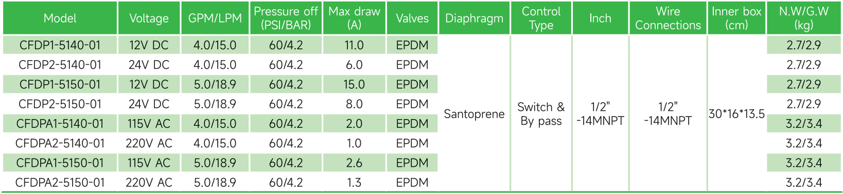 Bomba de diafragma de desplazamiento positivo de 4 cámaras, autocebante, capaz de funcionar en seco |