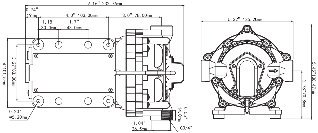 Bomba de diafragma de desplazamiento positivo de 4 cámaras, autocebante, capaz de funcionar en seco |