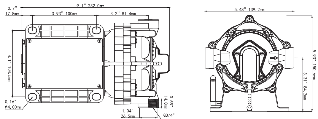 Bomba de diafragma de desplazamiento positivo de 4 cámaras, autocebante, capaz de funcionar en seco |