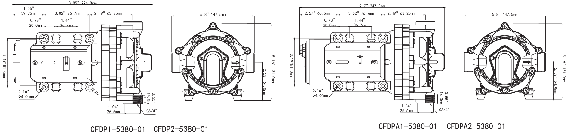 Bomba de diafragma de desplazamiento positivo de 4 cámaras, autocebante, capaz de funcionar en seco |