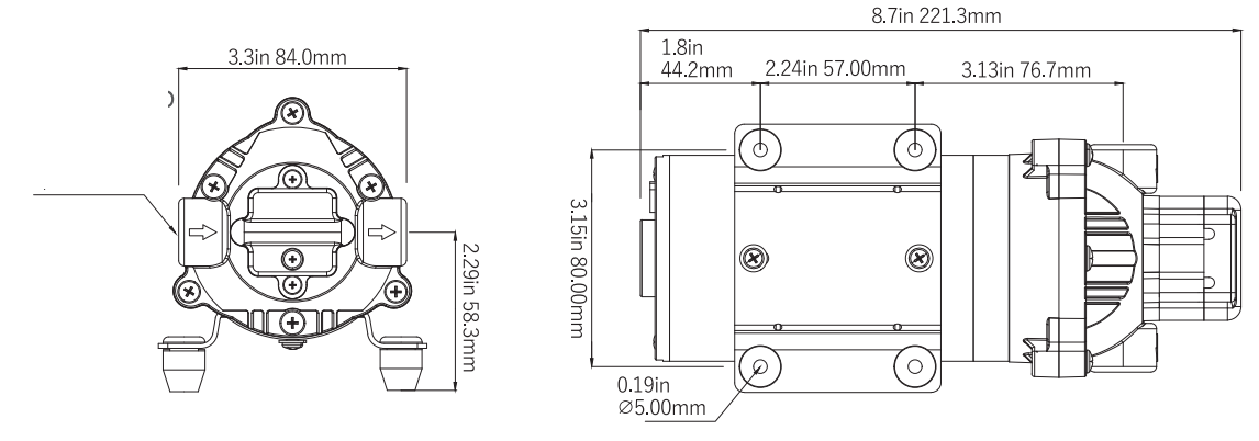 Bomba de diafragma de desplazamiento positivo de 4.3 cámaras para un funcionamiento suave y silencioso.