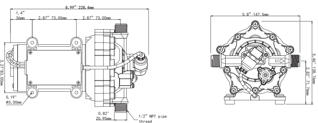Bomba de diafragma de desplazamiento positivo de 4 cámaras, autocebante, capaz de funcionar en seco |